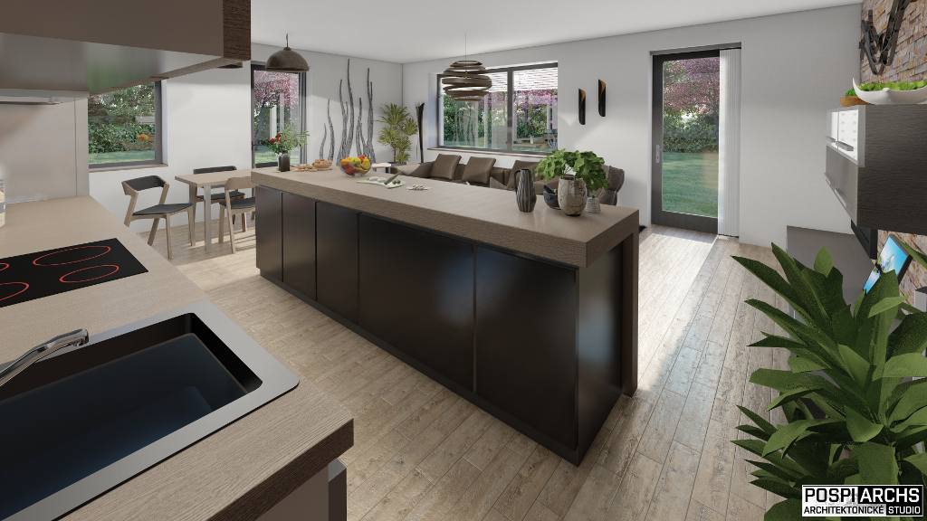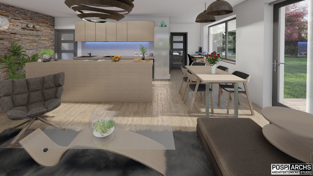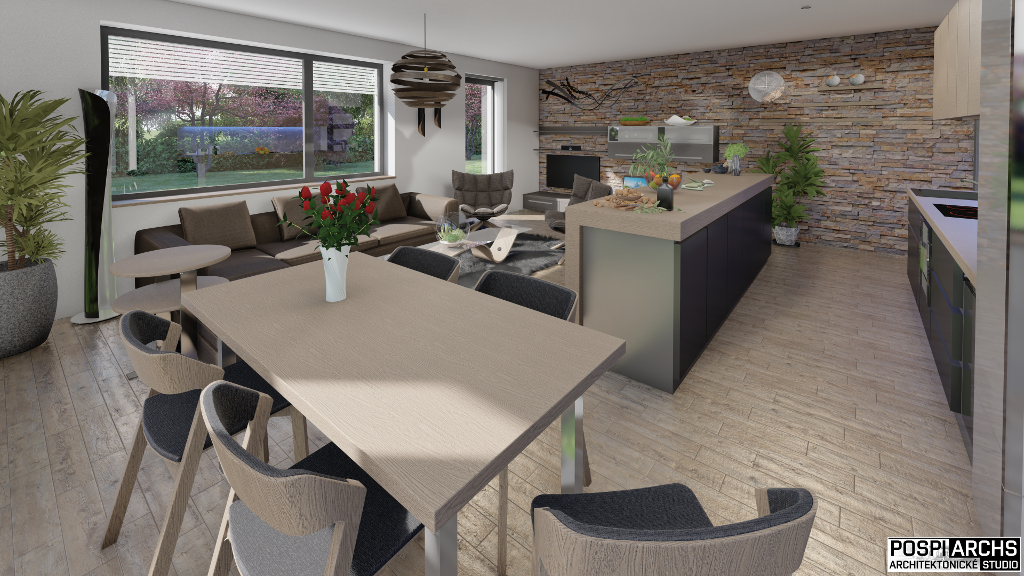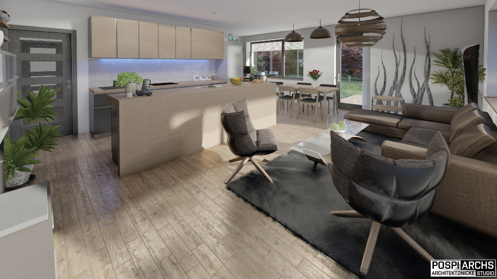 Vizualizace interiéru (obývací pokoj + kuchyně)