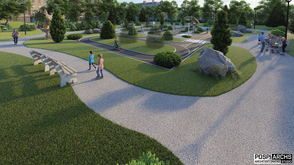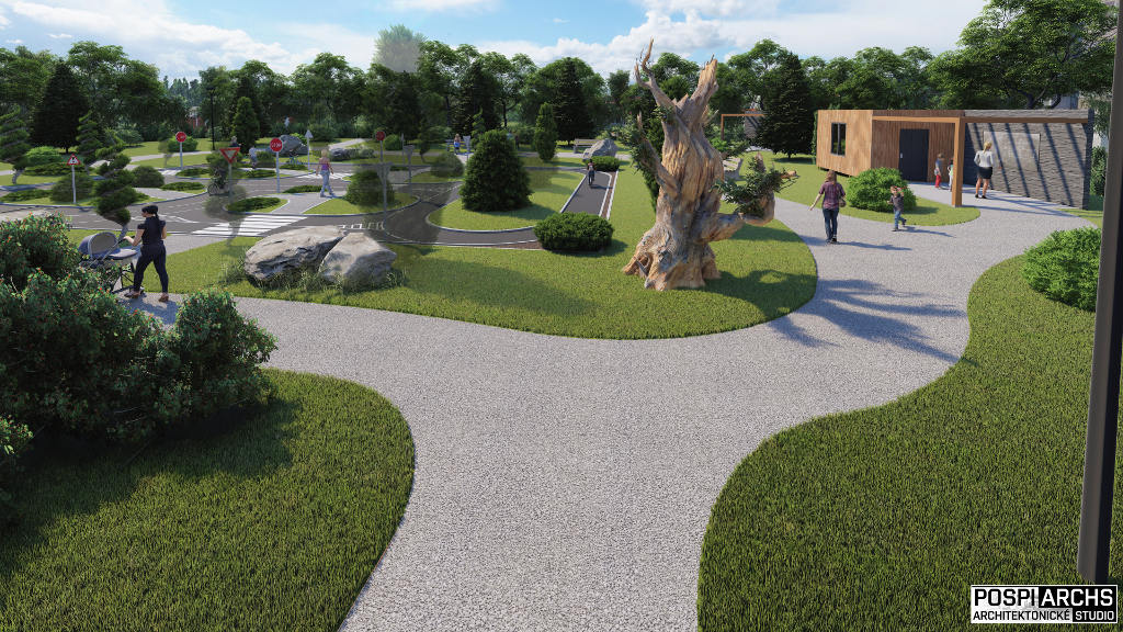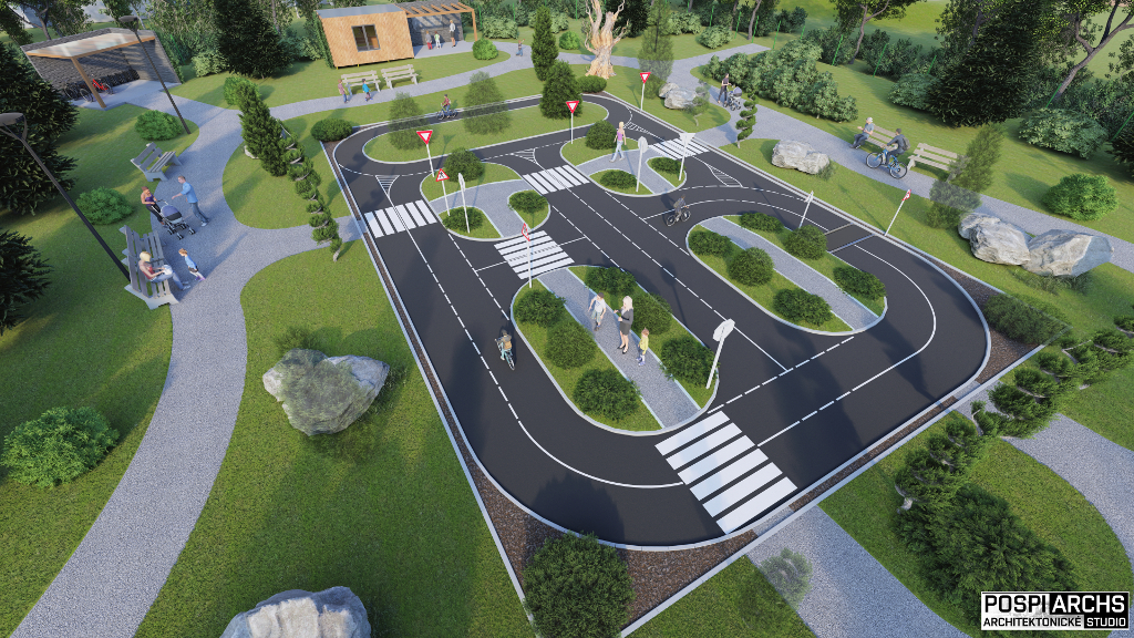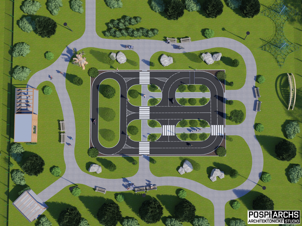 Návrh vizualizace a okolního prostředí pro dětské dopravní hřiště Vysočina. Univerzální projekt hřiště, který lze využít na více místech. Vhodný do městské zástavby.