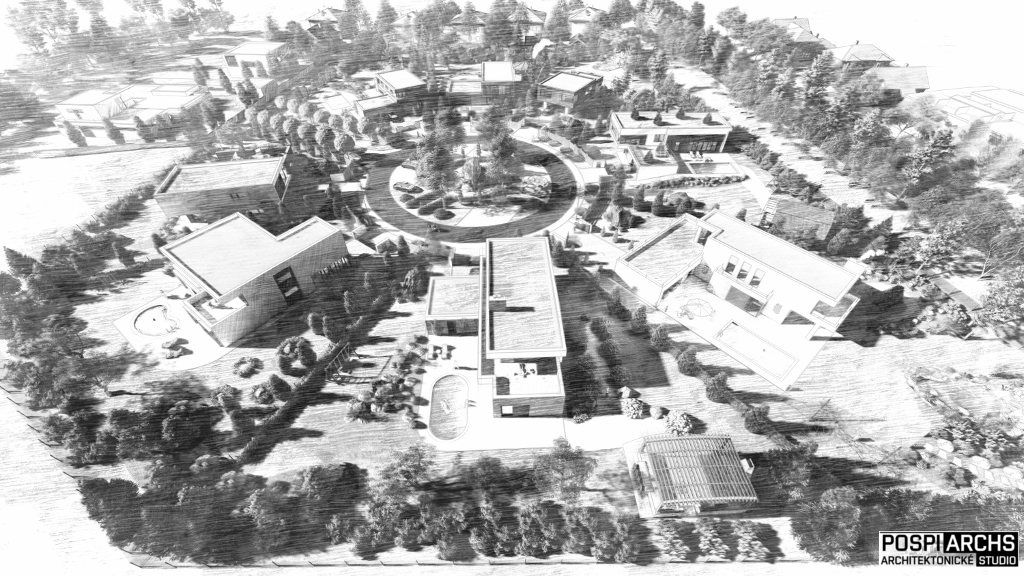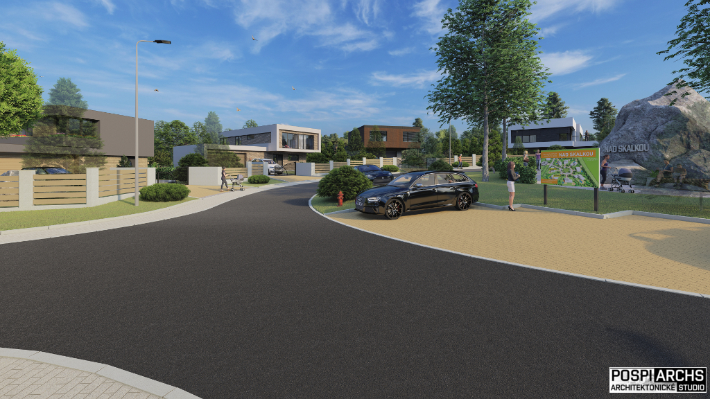 Návrh vizualizace celé rezidenční čtvrti „Nad Skalkou“ v Havlíčkově Brodě. Včetně názorné vizualizace rodinných domů a jejich zahrad.