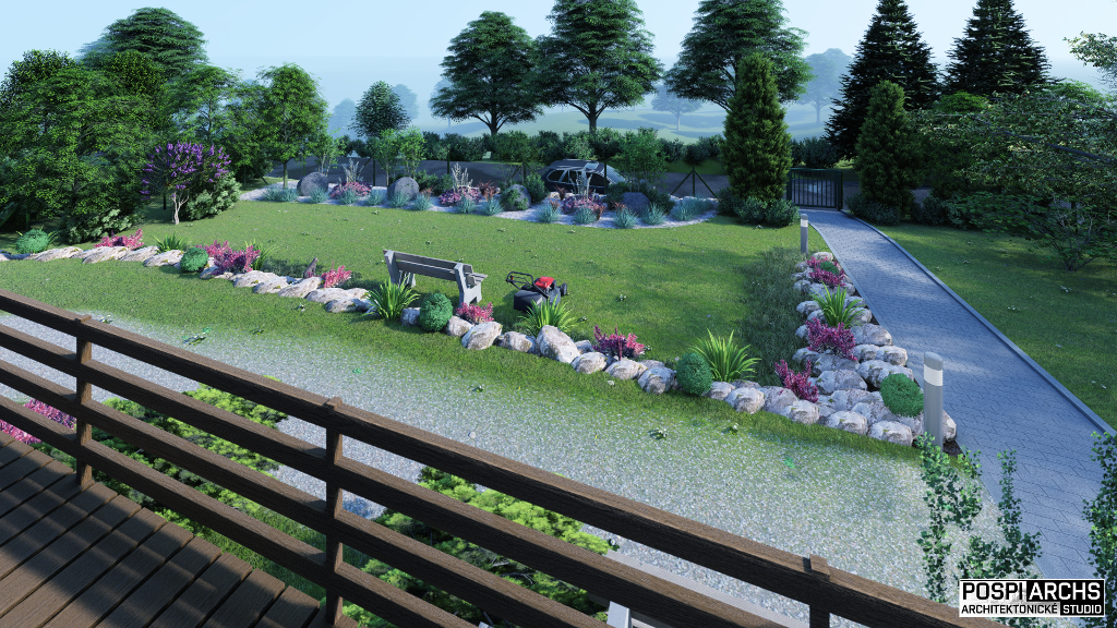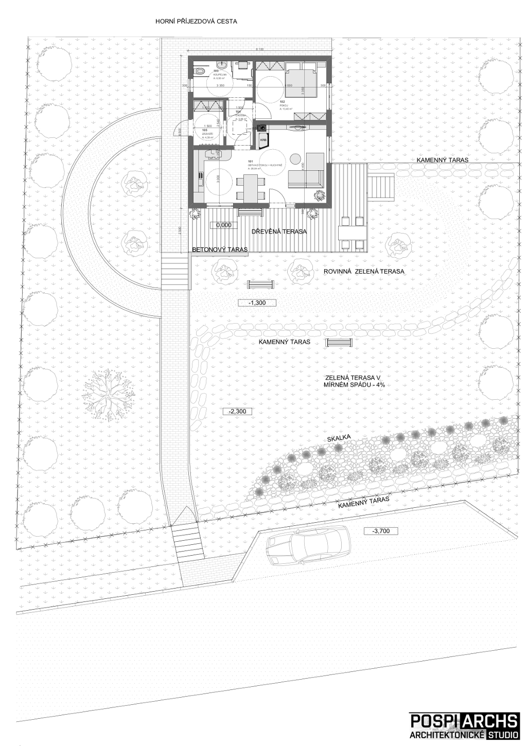 Návrh bezbariérové zahradní chaty se zahradou do klidové chatové oblasti v Havlíčkově Brodě.